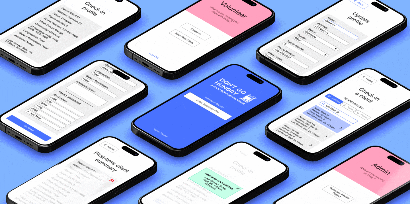 Don’t Go Hungry (DGH) is a non-profit organization that provides a nonjudgemental atmosphere driven by 150 volunteers to provide barrier-free access to food for people needing food support across Burnaby and New Westminster. At #HACKVAN2023, Don’t Go Hungry came to the hackathon needing assistance in various issues they had with their existing systems, the primary issue being that they do not have a digital database that they can use to seamlessly keep track of clients and create reports based on their clientele’s demographics.