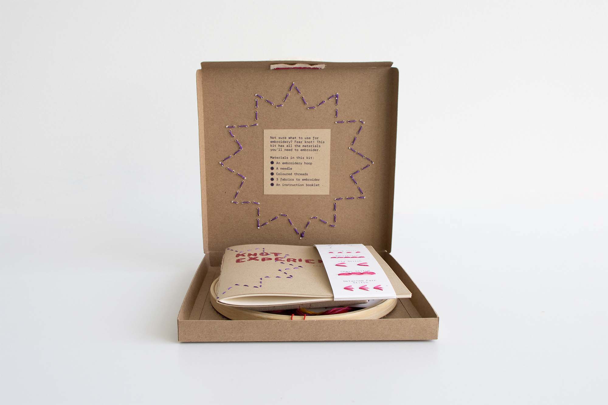 Over eight months, Knot Experienced materialized through iterations of workshops and crafting kits as part of my capstone project theme: DIY and hobby craft. An embroidery kit designed to empower anyone wanting to feel confident embroidering, this kit provides all the necessary tools, instructions and answers, barrier-free and without jargon, for people with little to no familiarity with sewing and needlework.